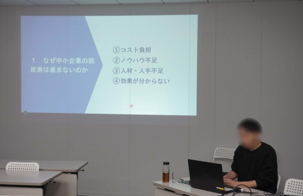12月8日(月)から12月16日(火)まで司法修習生1名を研修生として受け入れました。自ら当研究所を研修先として申し込まれたもので、研究活動の一部を体験してもらったほか、今年度の総合研究テーマである「市民と企業の脱炭素型ライフスタイル:ゼロカーボンシティ福岡へ向けた行動変容に関する研究」に関連して、中小企業の脱炭素化に関するレポートを取りまとめ、最終日に活動の成果を発表していただきました。短期間でしたが、貴重な経験であったとの感想を述べられました。